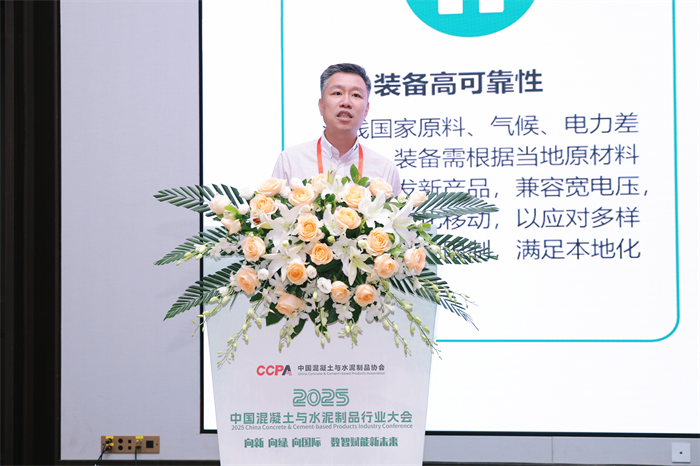 在第四屆中國混凝土與水泥制品行業(yè)共建“一帶一路”高質(zhì)量發(fā)展論壇上,泉工股份副總經(jīng)理傅國華發(fā)表《“一帶一路”基建需求下混凝土砌塊裝備技術(shù)全球化解決方案》主題演講。他結(jié)合企業(yè)在東南亞、中東、非洲等地的項(xiàng)目實(shí)踐,分享了“裝備+工藝+服務(wù)”一體化出海模式,提出以模塊化設(shè)計(jì)、遠(yuǎn)程運(yùn)維平臺和本地培訓(xùn)基地為抓手,幫助海外客戶快速形成高品質(zhì)砌塊生產(chǎn)能力,降低建設(shè)運(yùn)營成本,實(shí)現(xiàn)綠色低碳目標(biāo)。報(bào)告得到與會(huì)嘉賓的積極反響。